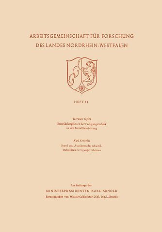Entwicklungslinien der Fertigungstechnik in der Metallbearbeitung.- Technische Hochschule Aachen Stand und Aussichten der schweißtechnischen Fertigungsverfahren.- Diskussionsbeiträge.