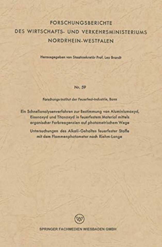 Gliederung.- I. Ein Schnellanalysenverfahren zur Bestimmung von Aluminiumoxyd, Eisenoxyd und Titanoxyd in feuerfestem Material mittels organischer Farbreagenzien auf photometrischem Wege.- II. Untersuchungen des Alkaligehaltes feuerfester Stoffe mit dem Flammenphotometer nach RIEHM-LANGE.