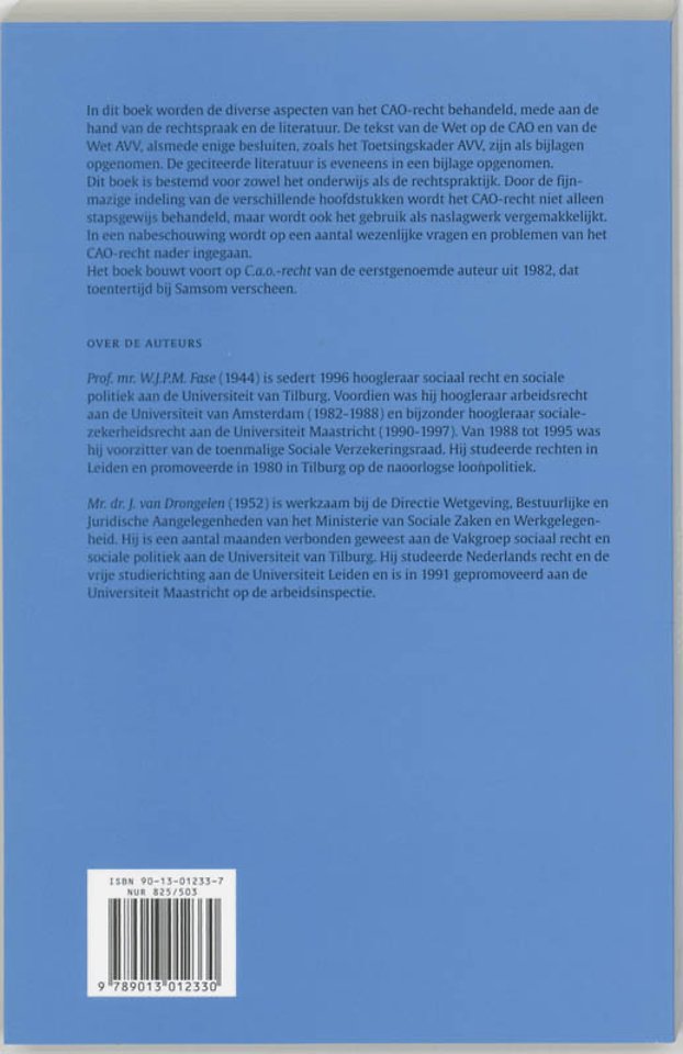 In dit boek worden de diverse aspecten van het CAO-recht behandeld, mede aan de hand van de rechtspraak en de literatuur. De tekst van de Wet op de CAO en van de Wet AVV, alsmede enige besluiten, zoals het Toetsingskader AVV, zijn als bijlagen opgenomen. De geciteerde literatuur is eveneens in een bijlage opgenomen. Dit boek is bestemd voor zowel het onderwijs als de rechtspraktijk.