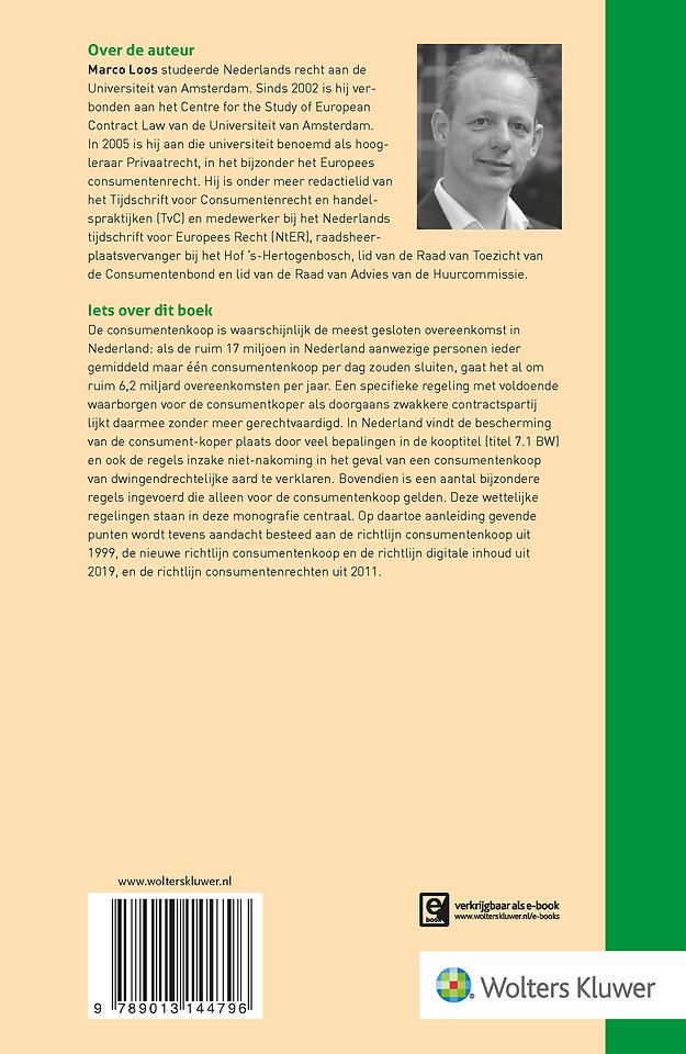 Marco Loos is hoogleraar Privaatrecht, in het bijzonder het Europees consumentenrecht, aan de Universiteit van Amsterdam en onder meer lid van de Study Group on a European Civil Code en rechter-plaatsvervanger bij de rechtbank te 's-Hertogenbosch.