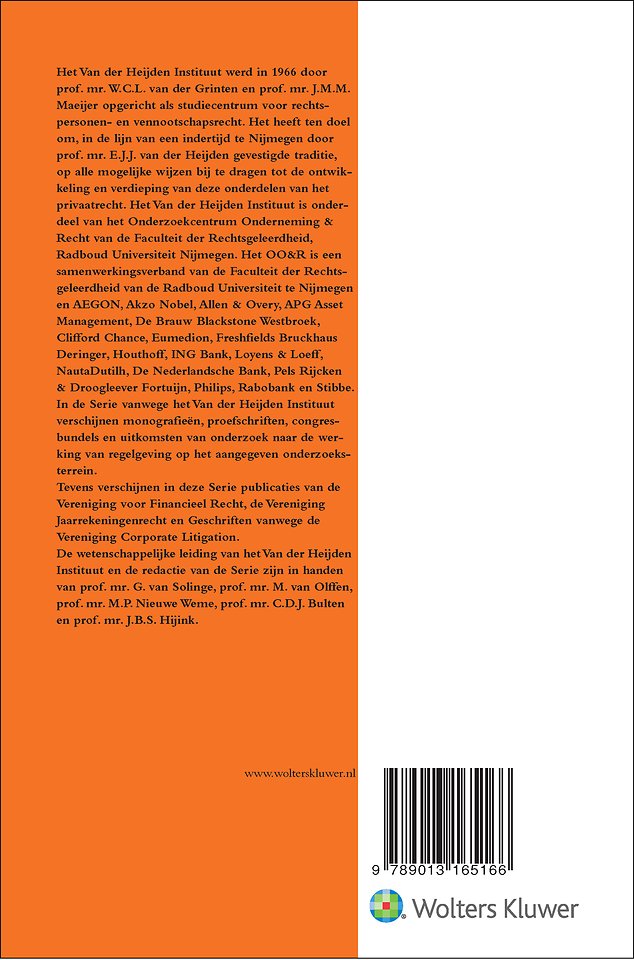 In de Serie vanwege het Van der Heijden Instituut verschijnen monografieën, proefschriften, congresbundels en uitkomsten van onderzoek naar de werking van regelgeving op aangegeven onderzoeksterrein.