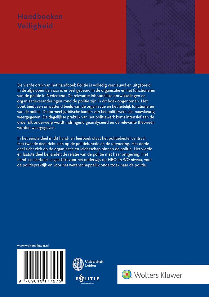 De vierde druk van het handboek Politie is volledig vernieuwd en uitgebreid. Het boek is geschikt voor het onderwijs op HBO en WO niveau, voor de politiepraktijk en voor het wetenschappelijk onderzoek naar de politie.