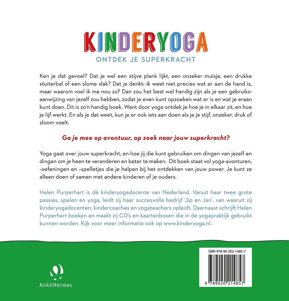 ‘Kinderyoga, ontdek je superkracht’ van de bekendste kinderyogadocent Helen Purperhart helpt om kinderen hun superkracht te laten ontdekken.