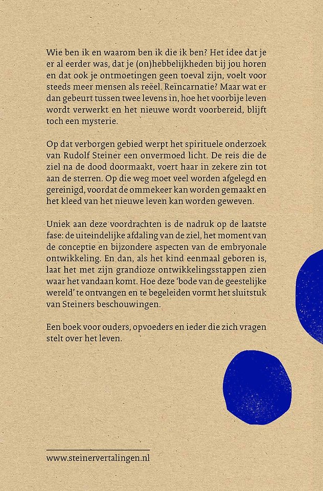 Uniek aan deze voordrachten is de nadruk op de laatste fase: de uiteindelijke afdaling van de ziel, het moment van de conceptie en bijzondere aspecten van de embryonale ontwikkeling. En dan, als het kind eenmaal geboren is, laat het met zijn grandioze ontwikkelingsstappen zien waar het vandaan komt. Hoe deze 'bode van de geestelijke wereld' te ontvangen en te begeleiden vormt het sluitstuk van Steiners beschouwingen.
