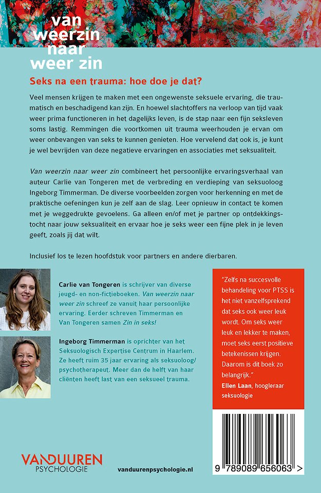 Van weerzin naar weer zin combineert het persoonlijke ervaringsverhaal van auteur Carlie van Tongeren met de verbreding en verdieping van seksuoloog Ingeborg Timmerman. De diverse voorbeelden zorgen voor herkenning en met de praktische oefeningen kun je zelf aan de slag. Leer opnieuw in contact te komen met je weggedrukte gevoelens. Ga alleen en/of met je partner op ontdekkingstocht naar jouw seksualiteit en ervaar hoe je seks weer een fijne plek in je leven geeft, zoals jij dat wilt.