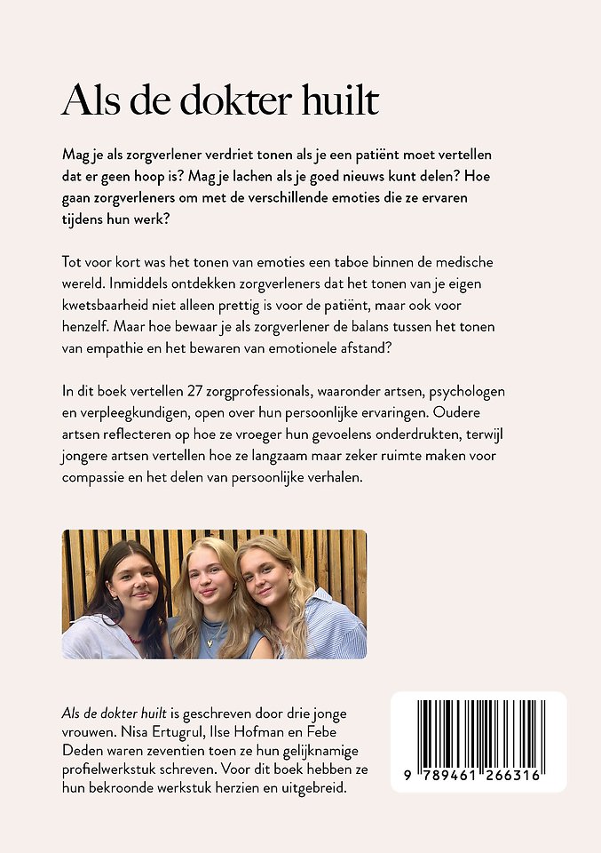'Als de dokter huilt' is geschreven door drie jonge vrouwen. Nisa Ertugrul, Ilse Hofman en Febe Deden waren zeventien toen ze hun gelijknamige profielwerkstuk schreven. Voor dit boek hebben ze hun bekroonde werkstuk herzien en uitgebreid.