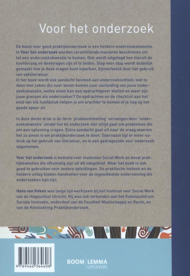De basis voor goed praktijkonderzoek is een heldere onderzoekskwestie. In Voor het onderzoek worden verschillende manieren beschreven om tot een onderzoekskwestie te komen. Ook wordt uitgelegd hoe hieruit de hoofdvraag en deelvragen zijn af te leiden. Stap voor stap wordt duidelijk gemaakt hoe je deze vragen kunt inperken, bijvoorbeeld door het gebruik van vakliteratuur.