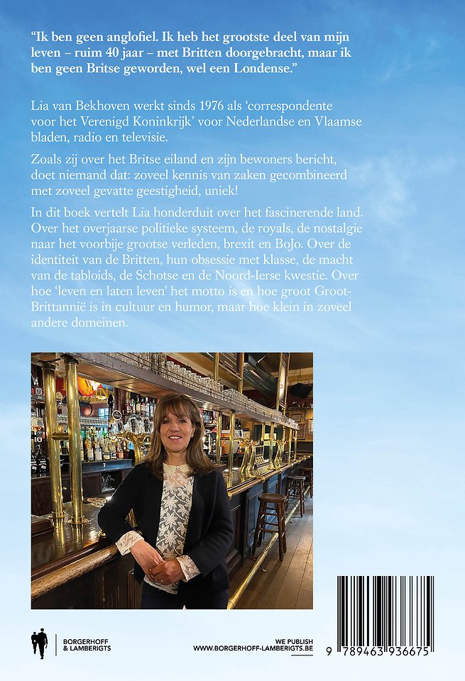 Lia van Bekhoven woont al meer dan veertig jaar in Londen. Bijna al die tijd werkte ze voor Vlaamse en Nederlandse radio en televisie, kranten en bladen om verslag uit te brengen van wat er in Groot-Brittannië gaande is. Met kennis van zaken, maar vooral ook met spitse humor en verrassende inzichten. Lia is een lust om naar te luisteren, en nu ook om te lezen.