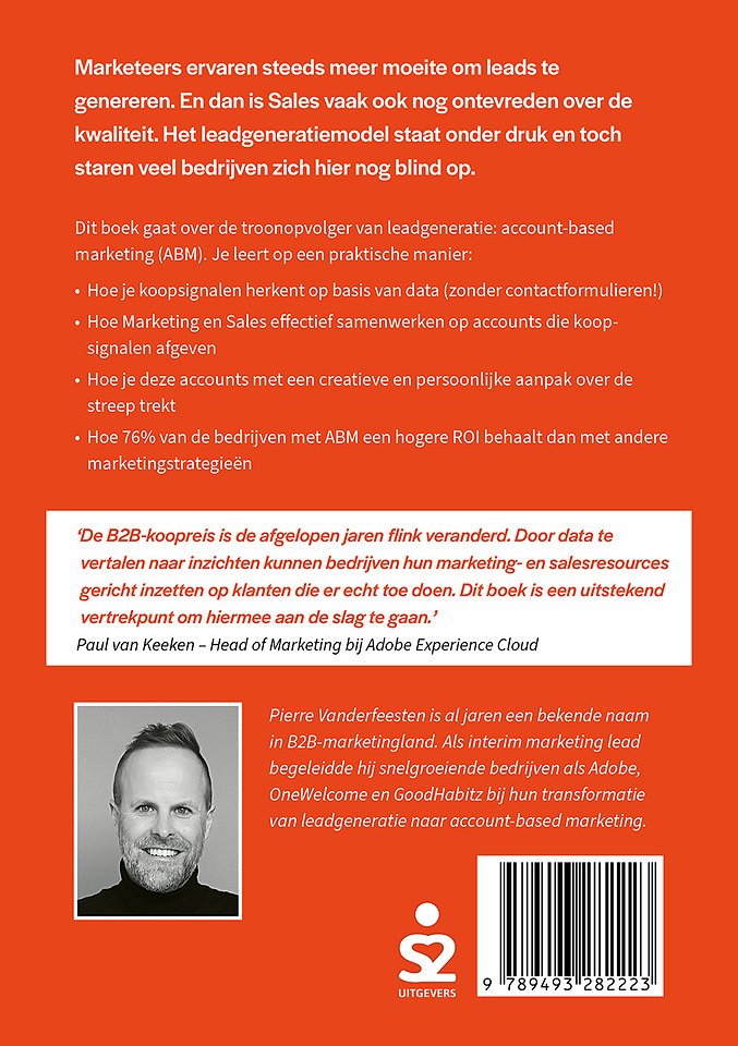 Dit boek gaat over de troonopvolger van leadgeneratie: account-based marketing (ABM). Je leert op een praktische manier: