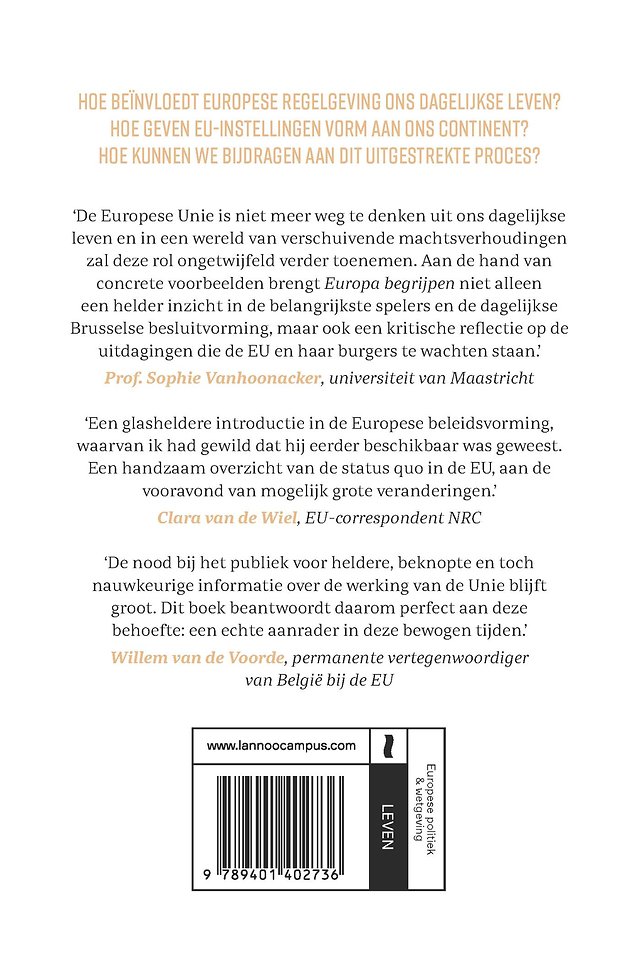 De Europese Unie is niet meer weg te denken uit ons dagelijkse leven en in een wereld van verschuivende machtsverhoudingen zal deze rol ongetwijfeld verder toenemen. Aan de hand van concrete voorbeelden brengt Europa begrijpen niet alleen een helder inzicht in de belangrijkste spelers en de dagelijkse Brusselse besluitvorming, maar ook een kritische reflectie op de uitdagingen die de EU en haar burgers te wachten staan. - Prof. Sophie Vanhoonacker, universiteit van Maastricht